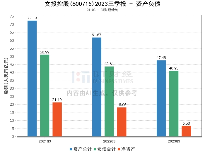 在资产负债方面,文投控股的总资产由上年度末的50.22亿元降至本报告期末的47.48亿元,负债合计由上年度末的42.33亿元降至本报告期末的40.95亿元,净资产由上年度末的7.9亿元降至本报告期末的6.53亿元。资产负债率由上年度末的84.27%上升至本报告期末的86.25%。这些数据反映出公司在资产和负债管理上的一些变化。