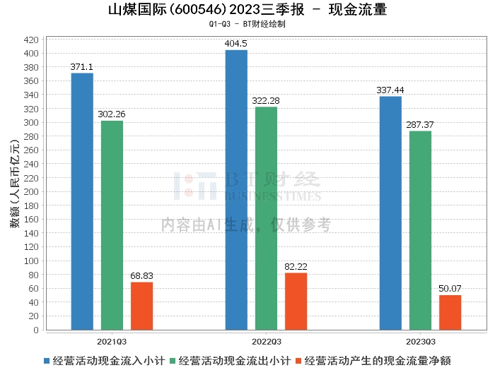 综上所述,山煤国际2023年三季度的经营状况受到了煤炭价格及销量下降的影响,营业收入、营业利润、净利润以及经营活动产生的现金流量净额等主要财务指标均有所下降。但是,公司的资产负债状况得到了改善,净资产增长,资产负债率下降。