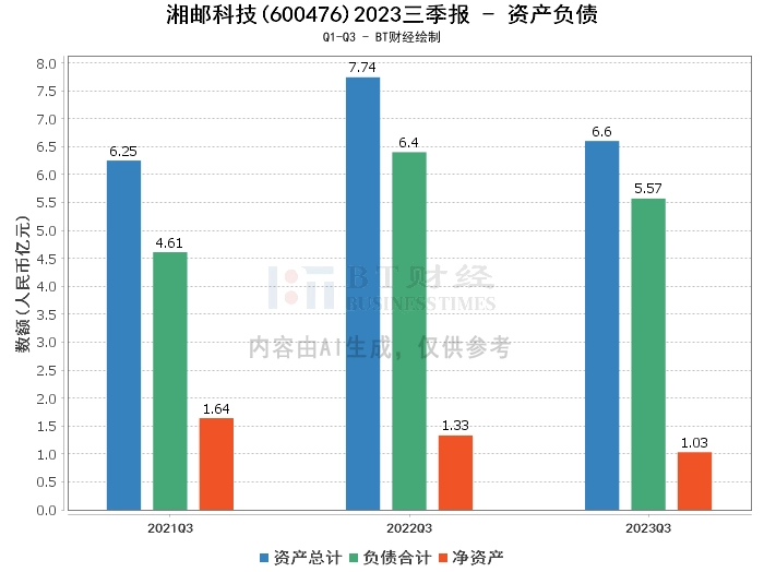 在资产负债方面,湘邮科技的总资产由上年度末的6.79亿元降至本报告期末的6.6亿元,负债合计由上年度末的5.53亿元增至本报告期末的5.57亿元,净资产由上年度末的1.26亿元降至本报告期末的1.03亿元。资产负债率由上年度末的81.43%增至本报告期末的84.41%。