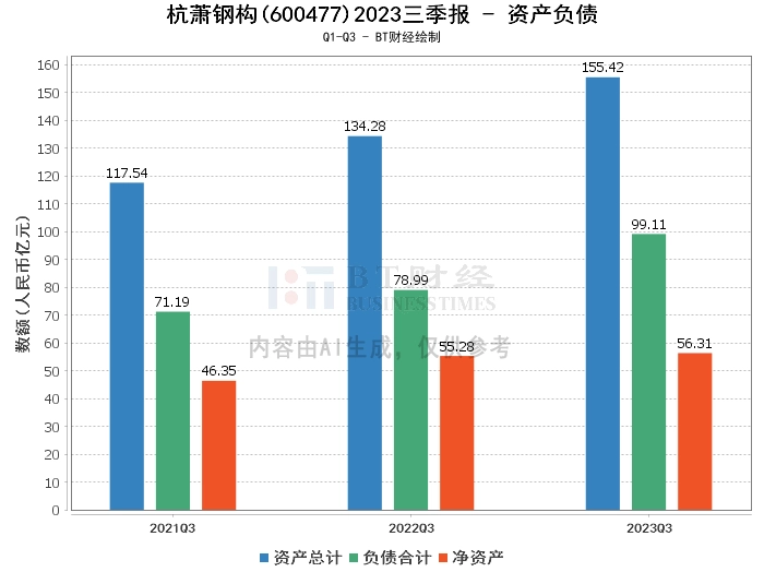 在资产负债方面,杭萧钢构的总资产从上年度末的139.31亿元增长到本报告期末的155.42亿元。负债合计从上年度末的84.84亿元增长到本报告期末的99.11亿元。净资产从上年度末的54.48亿元增长到本报告期末的56.31亿元。资产负债率从上年度末的60.9%上升到本报告期末的63.77%。