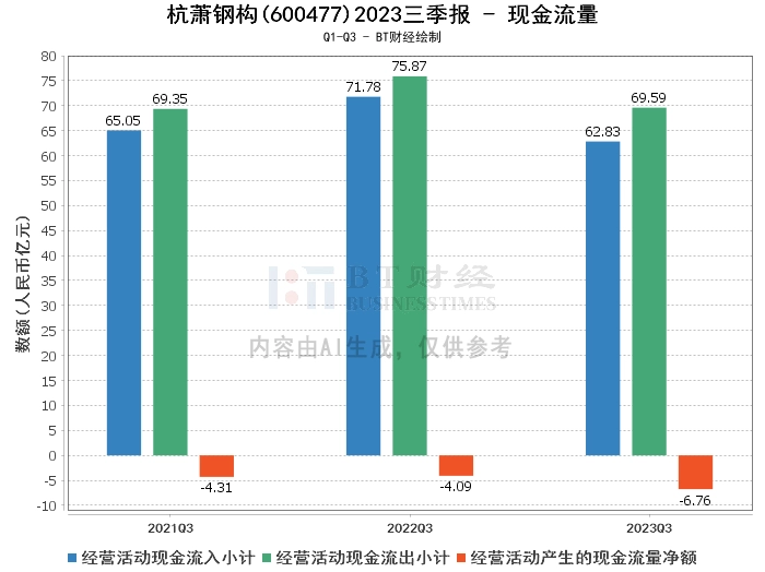 在现金流量方面,经营活动现金流入小计从上年同期的71.78亿元减少到年初至本报告期末的62.83亿元。经营活动现金流出小计从上年同期的75.87亿元减少到年初至本报告期末的69.59亿元。