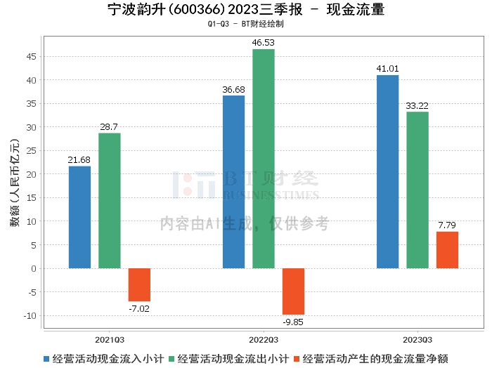 综上所述,宁波韵升在2023年三季度面临了市场竞争压力,毛利率和净利率均有所下滑,但在现金流量方面表现亮眼,经营活动产生的现金流量净额大幅增加,显示出公司在现金流管理方面的优秀能力。