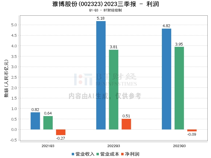 综上所述,雅博股份在2023年三季度的总资产和经营活动现金流量净额均有所增长,但在利润方面出现了亏损。这可能与公司在营业成本的增加以及营业收入的减少有关。
