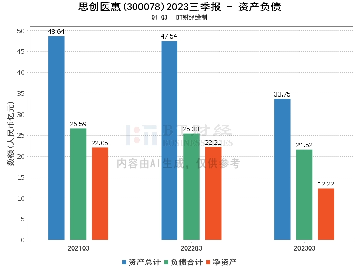从资产负债方面来看,思创医惠2023年三季度的总资产为33.75亿元,相比上年度末的36.49亿元有所下降。负债合计为21.52亿元,较上年度末的23.17亿元有所减少。净资产为12.22亿元,较上年度末的13.31亿元有所减少。资产负债率为63.78%,较上年度末的63.52%略有上升。