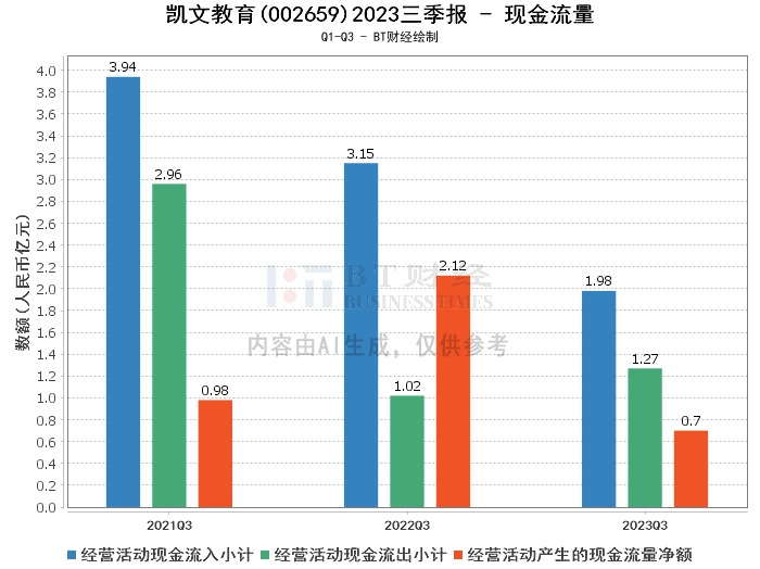 综上所述,凯文教育在2023年三季度的经营状况总体稳定,资产负债率有所下降,营业收入有大幅增长,但经营活动产生的现金流量净额有所下降。这可能表明公司在扩大营业规模的同时,需要更加关注现金流的管理。