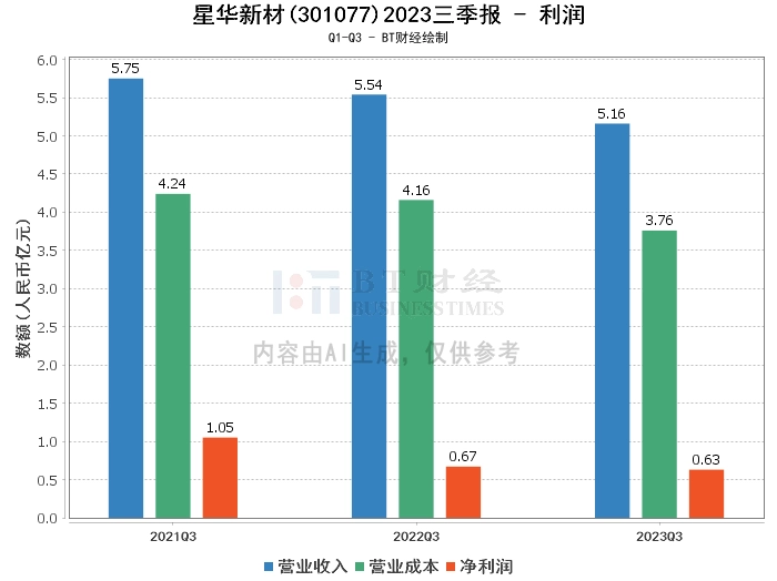综上所述,星华新材在2023年三季度的经营状况整体稳定,资产总计和经营活动产生的现金流量净额均有所增长,但营业收入、营业利润和净利润略有下降。尽管面临一些挑战,但星华新材依然在反光材料行业中保持领先地位,并有望在未来几年的市场稳定增长中进一步提升市场份额。