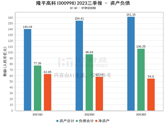 在资产负债方面,2023年三季度,隆平高科的总资产为161.16亿元,相比上年度末的146.05亿元增长10.35%。负债总额为106.25亿元,相比上年度末的88.5亿元增长20.17%。净资产为54.9亿元,相比上年度末的57.54亿元减少4.59%。资产负债率为65.93%,相比上年度末的60.6%有所上升。