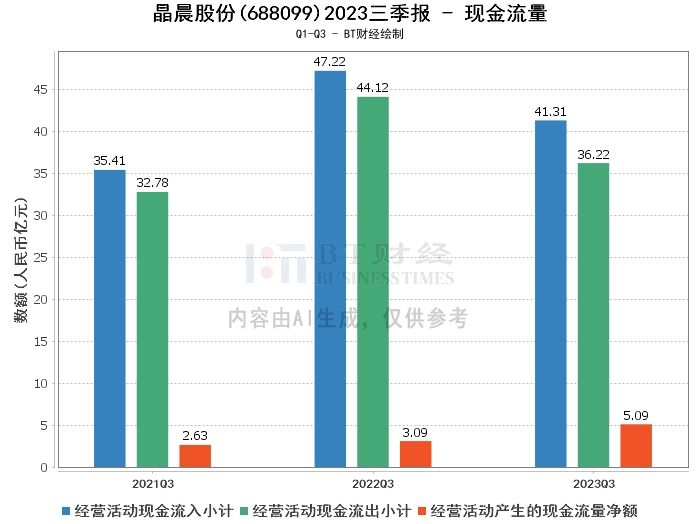 在现金流量方面,晶晨股份2023年三季度的经营活动产生的现金流量净额为5.09亿元,相比上年同期的3.09亿元有所增长。经营活动现金流入小计为41.31亿元,相比上年同期的47.22亿元有所减少。经营活动现金流出小计为36.22亿元,相比上年同期的44.12亿元有所减少。
