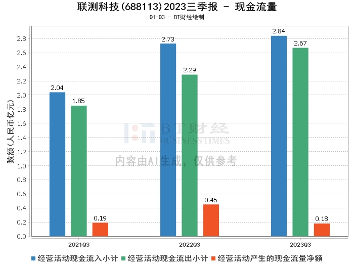 综上所述,联测科技2023年三季度的经营状况总体稳定,营业收入和净资产均实现了增长,但净利润和现金流量净额较上年同期有所下降。公司在动力系统智能测试装备的研发和制造方面具有较强的能力,产品和服务在新能源汽车、燃油汽车、船舶和航空等领域得到了广泛应用。