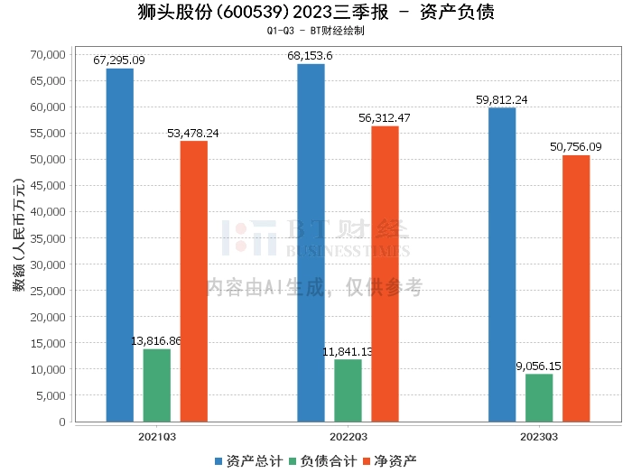 在资产负债方面,2023年三季度末,狮头股份的总资产为5.98亿元,相比上年度末的7.01亿元有所下降。负债总额为9056.15万元,相比上年度末的1.13亿元也有所减少。公司的净资产为5.08亿元,相比上年度末的5.89亿元有所减少。资产负债率为15.14%,相比上年度末的16.07%有所下降。