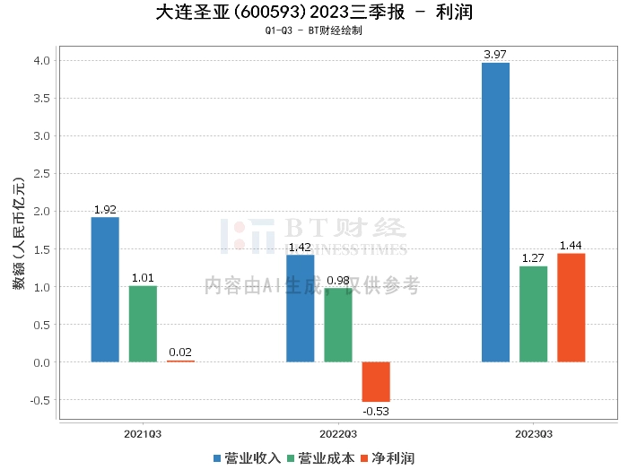 综上所述,大连圣亚2023年三季度的经营状况有所改善。公司的总资产、净资产和营业收入均有所增长,净利润实现了扭亏为盈,现金流量净额大幅增长。这些都表明公司的经营状况正在逐步改善。