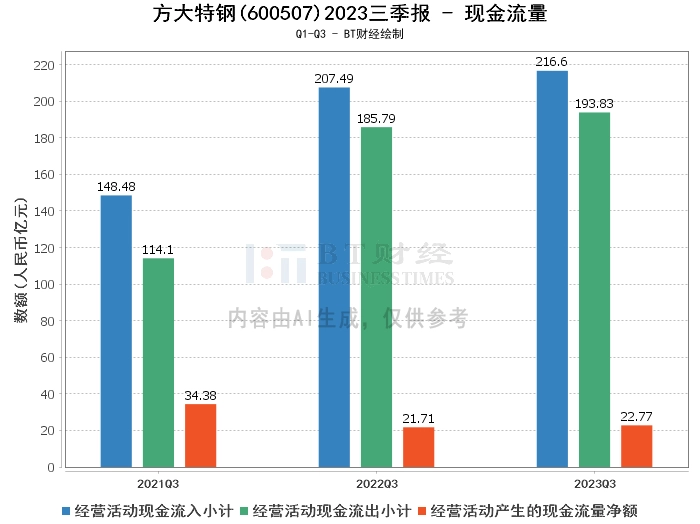 综上所述,方大特钢2023年三季度的经营状况相比上年同期有所下滑,净利润和营业收入均出现下降,但毛利率有所提升,现金流量保持稳定。这可能与市场环境变化,以及公司产品价格和原燃料价格的变动有关。