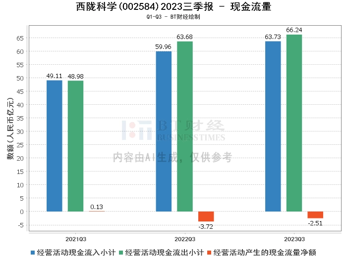 综上所述,西陇科学2023年三季度的营业收入增长显著,但净利润面临压力,主要原因是投资收益减少。在资产负债方面,公司的总资产和负债总额均有所下降,净资产略有增长,资产负债率也有所下降。在现金流量方面,经营活动的现金流入和现金流出均有所增长。