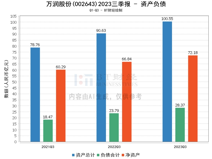 在资产负债方面,2023年三季度末,万润股份的总资产达到100.55亿元,相比上年度末的92.7亿元有所增加。负债合计为28.37亿元,较上年度末的24.86亿元有所上升。公司的净资产为72.18亿元,较上年度末的67.84亿元有所增长。资产负债率为28.21%,略高于上年度末的26.81%。