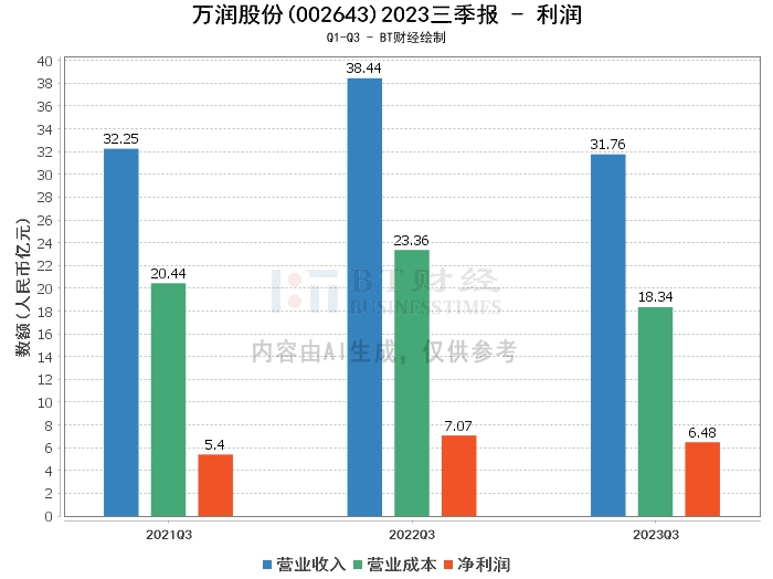 在利润方面,2023年年初至三季度末,公司的营业收入为31.76亿元,相比上年同期的38.44亿元有所减少。营业利润为7.05亿元,较上年同期的8.49亿元有所下降。营业成本为18.34亿元,较上年同期的23.36亿元有所减少。净利润为6.48亿元,较上年同期的7.07亿元有所减少。