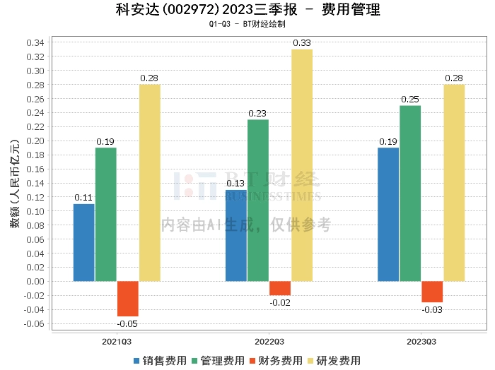 在现金流量方面,科安达2023年三季度的经营活动产生的现金流量净额为-1988.41万元,相比上年同期的4023.22万元,转为负值,主要系本期缴纳前期缓缴税款所致。经营活动现金流入小计为2.63亿元,相比上年同期的2.56亿元,有所增加。经营活动现金流出小计为2.83亿元,相比上年同期的2.16亿元,有所增加。