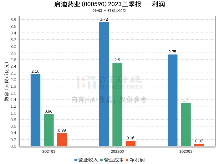 【BT财报瞬析】启迪药业2023三季报:营业收入增长,净利润下滑,现金流量净额大幅度下降
