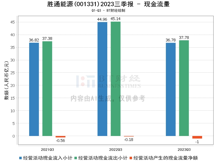 在现金流量方面,胜通能源2023年三季度的经营活动现金流入小计为36.78亿元,相比上年同期的44.96亿元有所减少。经营活动现金流出小计为37.78亿元,相比上年同期的45.14亿元有所减少。