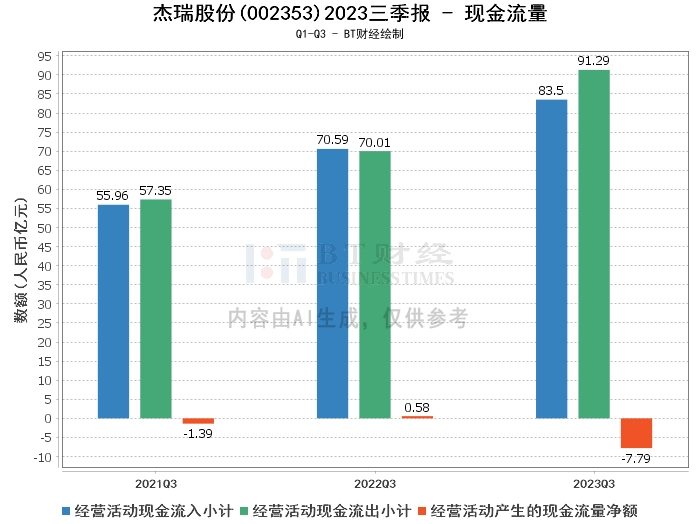 综上所述,杰瑞股份公司2023年三季度的经营状况总体稳定,资产总计、营业收入和净利润均有所增长,但毛利率、净利率和净资产收益率有所下降,经营活动产生的现金流量净额也有所下降。