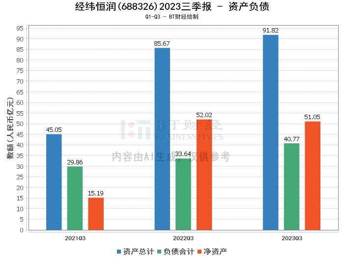 在资产负债方面,经纬恒润2023年三季度的总资产为91.82亿元,相比上年度末的88.67亿元有所增长。同时,负债合计也从上年度末的35.67亿元增加到本报告期末的40.77亿元。净资产则从上年度末的53亿元减少到本报告期末的51.05亿元。资产负债率从上年度末的40.22%上升到本报告期末的44.4%。