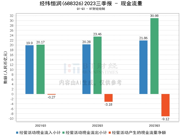 在现金流量方面,经萬恒润2023年三季度的经营活动现金流入小计为21.86亿元,相比上年同期的20.28亿元有所增长。然而,经营活动现金流出小计也从上年同期的23.46亿元增加到本报告期末的30.98亿元。