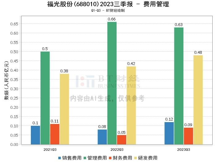 综上所述,福光股份2023年三季度的经营状况面临一定的压力。受市场周期性波动、客户生产计划延期、合同签订延迟的影响,公司的营业收入和净利润均出现下滑。同时,公司加大了研发投入,研发费用增加,这也对公司的利润产生了一定的影响。