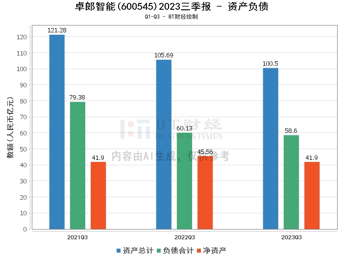在资产负债方面,卓郎智能2023年三季度末的总资产为100.5亿元,相比上年度末的98.6亿元有所增长。负债合计为58.6亿元,略高于上年度末的58.35亿元。公司的净资产为41.9亿元,较上年度末的40.25亿元有所提升。资产负债率为58.31%,较上年度末的59.18%有所下降。