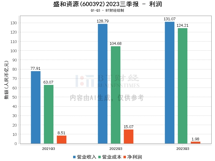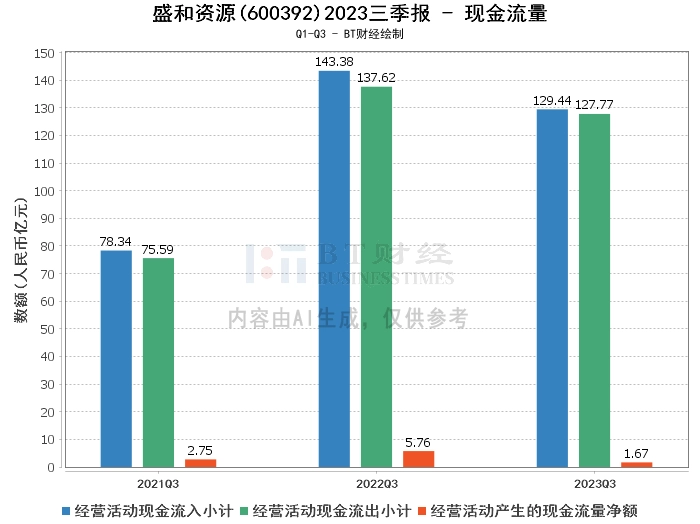 综上所述,盛和资源公司在2023年三季度的经营状况出现了一些波动。虽然公司的稀土销量增加,营业收入有所增长,但由于主要稀土产品价格下降,公司的毛利率和净利润均出现了较大幅度的下降。此外,公司的现金流量净额也出现了大幅度的下降。