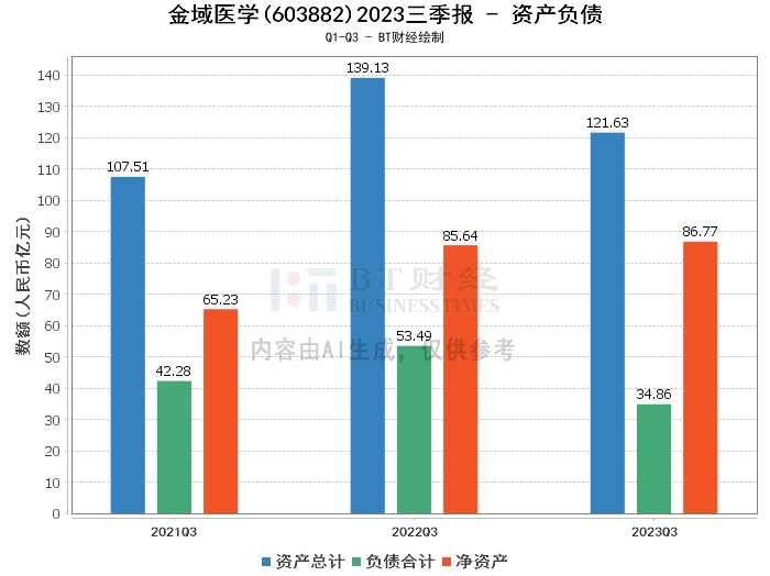 在资产负债方面,金域医学2023年三季度的总资产为121.63亿元,相比上年度末的138.91亿元有所下降。负债合计为34.86亿元,相比上年度末的50.16亿元有所减少。公司的净资产为86.77亿元,相比上年度末的88.75亿元略有下降。资产负债率为28.66%,相比上年度末的36.11%有所降低。