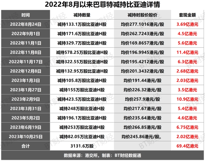 港交所10月31日披露了巴菲特减持比亚迪的消息。