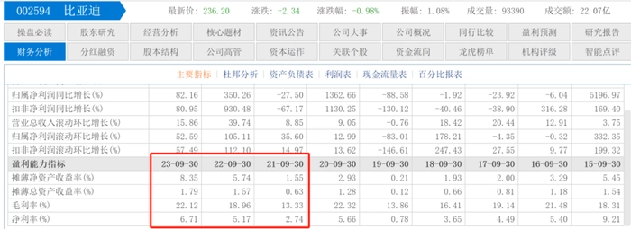 比亚迪毛利率和净利率提升的背后是巨额研发投入下的科技创新。今年前三季度,比亚迪研发费用249.38亿元,同比增长129.42%。