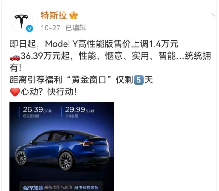 比亚迪毛利率的大幅提升带动净利率的提升,第三季度比亚迪的净利率高达7.71%,近8年同期新高,同比去年同期的5.17%提升了1.54个百分点,相比2021年同期的2.74%净翻了一倍有余。而一直降价的特斯拉或利润承压,在10月27日主动提价,这是近两年来的首次涨价。可见马斯克一样承受投资者的巨大压力,一直宣称会不断降价的马斯克再次“食言”了。