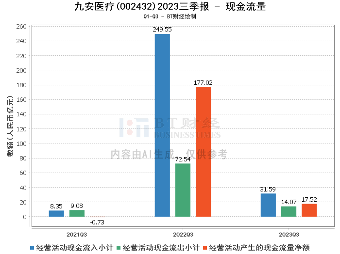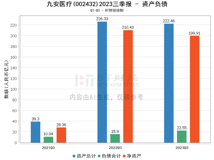 从资产负债的角度来看,九安医疗2023年三季报显示,公司总资产由上年度末的217.31亿元增加至222.46亿元,增长了2.37%。负债合计从上年度末的17.06亿元上升至22.55亿元,增长了32.21%。净资产则略有下降,从200.25亿元减少至199.91亿元。资产负债率从上年度末的7.85%上升至10.14%,反映出公司财务杠杆有所上升。商誉在本报告期内由于处置eDevice公司股权而减至0元,减少了100%。