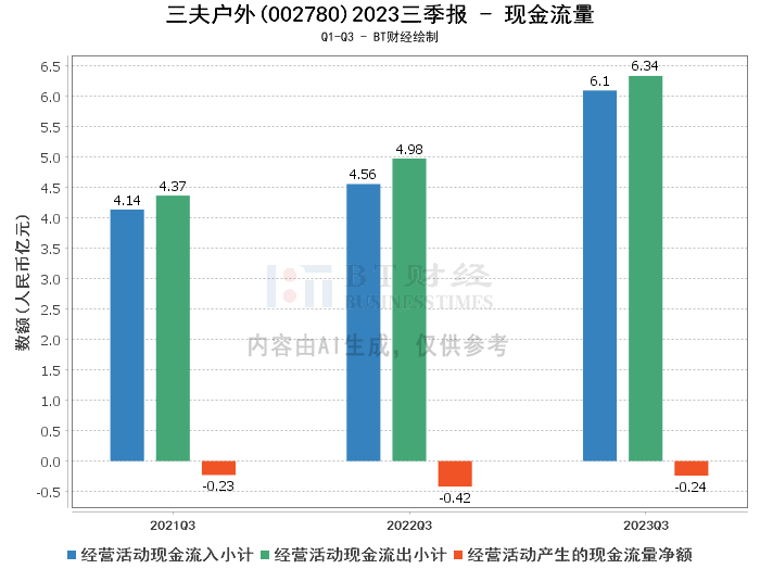 综上所述,三夫户外在2023年三季度表现出了良好的经营状况,营业收入和利润的增长显示出公司在户外运动市场的竞争力和市场需求的增长潜力。然而,现金流量净额的下降需要进一步关注,以确保公司的流动性和财务健康。