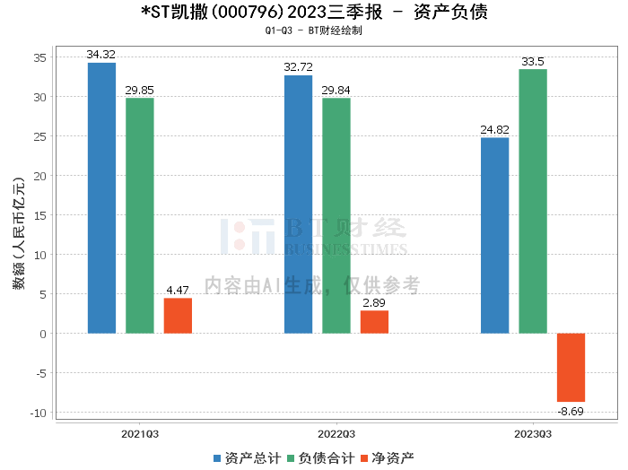综上所述,*ST凯撒在2023年三季度的经营状况显示出业务恢复的积极迹象,营业收入的增长和现金流的显著改善为公司的财务健康提供了支持。然而,资产负债率的上升和所有者权益的减少也提示了公司在财务结构上存在的风险。