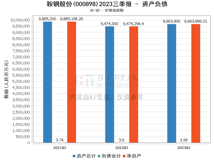 资产负债方面,鞍钢股份的总资产由上年度末的969.35亿元微降至本报告期末的966.39亿元,略降0.31%。负债合计从上年度末的3.81万元减少至3.99万元,显示出公司的财务结构相对稳定。