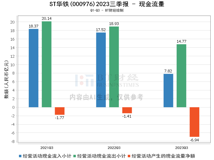 现金流量方面,ST华铁在报告期内面临挑战。经营活动产生的现金流量净额为-6.94亿元,较上年同期的-1.41亿元下降,主要是因为购买原材料采购款增加所致。