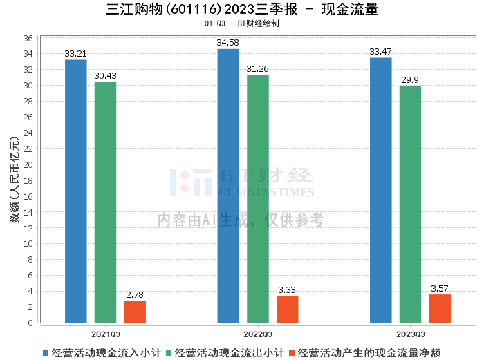 综上所述,三江购物在2023年三季度显示出了稳健的财务结构和良好的现金流量管理能力。尽管面临销售下降的挑战,公司通过有效的成本控制和经营活动现金流的增加,保持了一定的盈利水平。数字化转型和市场化机制的推进,为公司的长远发展提供了新的动力。