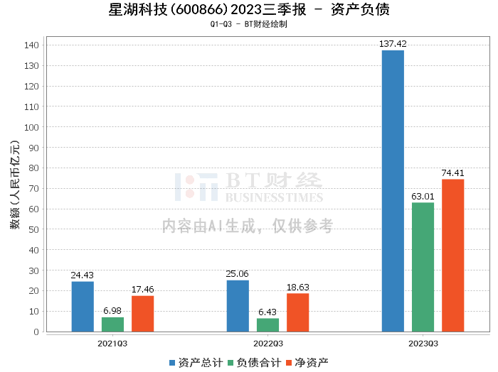 从资产负债方面来看,星湖科技2023年三季度末的总资产为137.42亿元,相较于上年度末的159.98亿元有所下降。负债合计为63.01亿元,较上年度末的90.69亿元显著减少。净资产则从上年度末的69.29亿元增长至74.41亿元。资产负债率由上年度末的56.69%降至45.85%,反映出公司的财务结构得到了一定程度的优化。