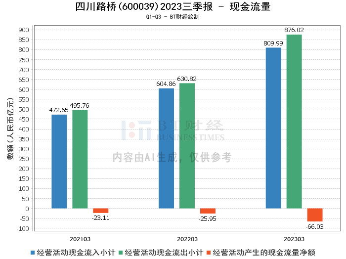 综上所述,四川路桥在2023年三季度展现了稳健的经营状况,资产规模增长,营业收入和净利润均实现稳步增长。虽然现金流量净额有所下降,但公司整体财务状况仍然健康。