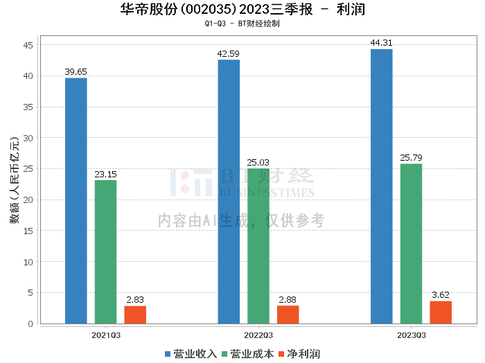 在利润方面,华帝股份的营业收入从上年同期的42.59亿元增长至44.31亿元,增长了4.03%。营业利润从上年同期的3.43亿元增长至4.09亿元,毛利率和净利率均有所提升,分别从上年同期的41.22%和6.76%增长至41.79%和8.17%。净利润从上年同期的2.88亿元增长至3.62亿元,增长了28.16%。这些增长表明华帝股份在提升营收的同时,也有效控制了成本,提高了盈利能力。