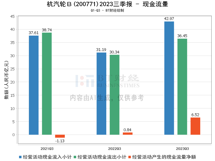 综上所述,杭汽轮B在2023年三季度面临着营业收入下降和盈利能力减弱的双重挑战。尽管现金流量净额有所改善,但资产负债率的上升和净资产的下降表明了公司财务结构的紧张。公司在产品技术创新和产业结构升级方面的努力,以及进入新能源领域的布局,可能在未来成为转型和增长的新动力。