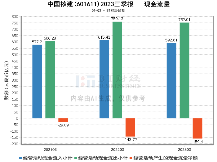 综上所述,中国核建2023年三季报显示了公司在核电工程建设领域的强劲实力和稳健的财务状况。资产和净资产的增长,以及营业收入和净利润的提升,反映了公司在市场中的竞争力和盈利能力。虽然现金流量净额有所下降,但公司整体的经营状况仍然健康。