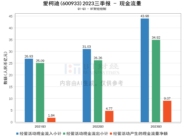 综上所述,爱柯迪在2023年三季度展现出强劲的财务表现。总资产、净资产的增长,以及营业收入、净利润的显著提升,均显示出公司在销售规模和盈利能力上的积极进展。现金流量的大幅增加进一步证明了公司经营活动的健康和效率。