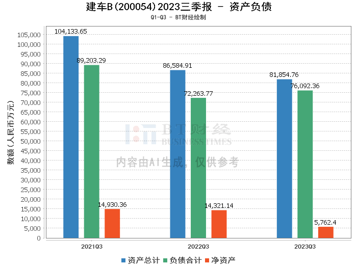 在资产负债方面,建车B的总资产由上年度末的8.97亿元减少到本报告期末的8.19亿元,减少了8.74%。负债合计也从上年度末的7.86亿元降至7.61亿元。净资产从上年度末的1.11亿元下降至5762.4万元,降幅为48.13%,资产负债率则从上年度末的87.61%上升至92.96%。这些变化主要是由于前三季度净利润亏损所致。