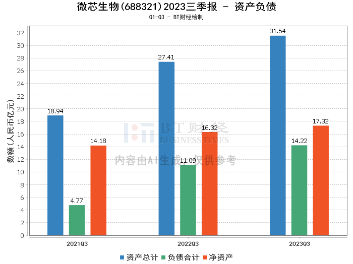资产负债方面,微芯生物截至2023年三季度末的总资产达到31.54亿元,较上年度末的28.96亿元增长了8.92%。负债合计为14.22亿元,相比上年度末的13.2亿元增加了7.73%。净资产从上年度末的15.76亿元增长至17.32亿元,增长率为9.91%。资产负债率略有下降,从上年度末的45.59%降至45.09%,显示出公司财务结构的稳定性。