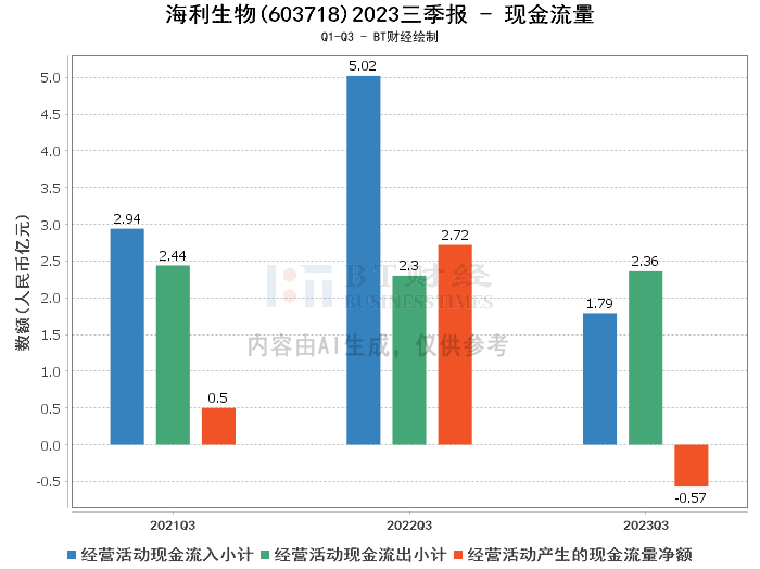 综上所述,海利生物在2023年三季度面临着一系列挑战,但公司通过积极调整经营策略,实现了净利润的显著增长。虽然营业收入有所下降,但公司通过优化收入结构和控制成本,保持了较高的盈利能力。