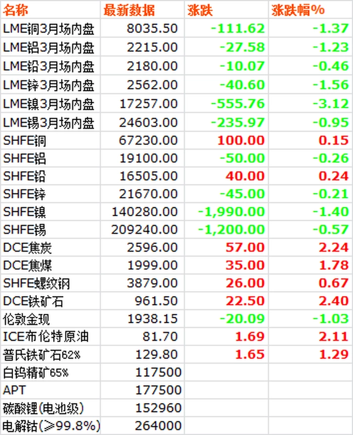 【大宗·期货】11月10日大宗金属交易市场复盘