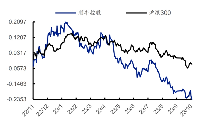 但顺丰在二级市场的表现却不尽如人意。近一年多来,公司股价跌幅显著大于沪深300。