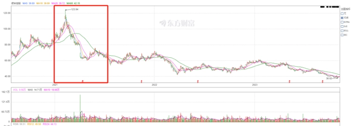 乘着大盘牛市的春风,顺丰控股的股价在2020年一路上扬,并在2021年初摸高到超120元的历史高位,巅峰市值狂破5000亿元,成为各路资金的宠儿。